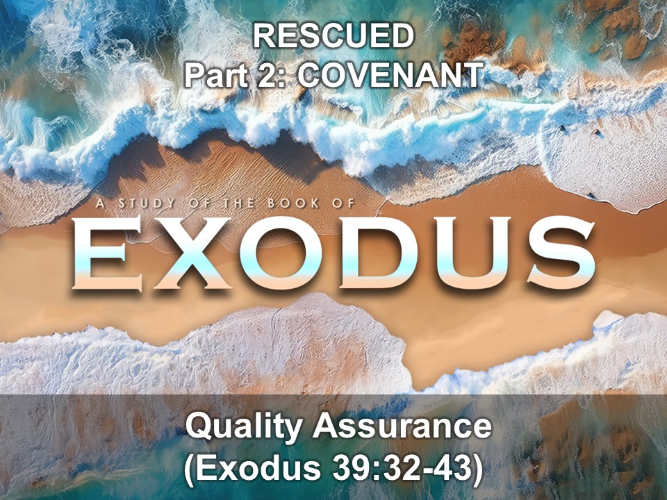 Marc Webb Quality Assurance | God demands His people be about His work with faithful, obedience and excellence. | ![]() | Sep 21 2025 | Exodus | Sunday Morning | Marc Webb | Extraordinary, Faithfulness, Obedience | ||