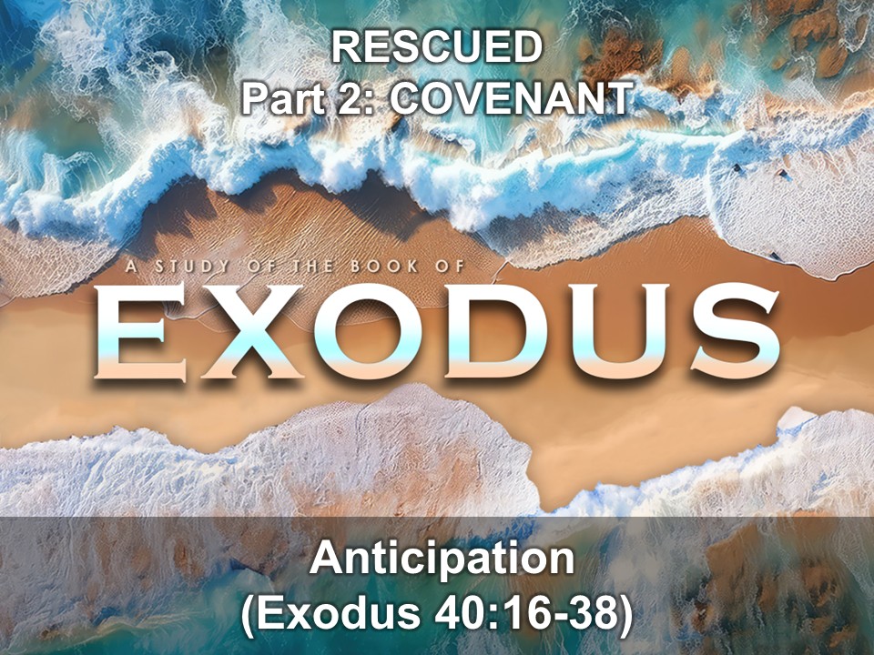 There are two points this morning. The first, Anticipation, is found in Exodus 40:16-33. This is what God’s Word says, “Moses did everything just as the Lord commanded him. So, the tabernacle was set up on the first day of the first month in the second year. When Moses set up the tabernacle, he put the bases in place, erected the frames, inserted the crossbars and set up the posts. Then he spread the tent over the tabernacle and put the covering over the tent, as the Lord commanded him. He took the tablets of the covenant law and placed them in the ark, attached the poles to the ark and put the atonement cover over it. Then he brought the ark into the tabernacle and hung the shielding curtain and shielded the ark of the covenant law, as the Lord commanded him. Moses placed the table in the tent of meeting on the north side of the tabernacle outside the curtain and set out the bread on it before the Lord, as the Lord commanded him.